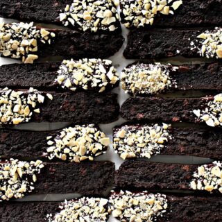 Crunchy and super chocolaty, Double Chocolate Passover Biscotti (GF) are a delightfully indulgent dipping cookie. They are sturdy enough to dunk in milk or coffee, but are also great on their own.